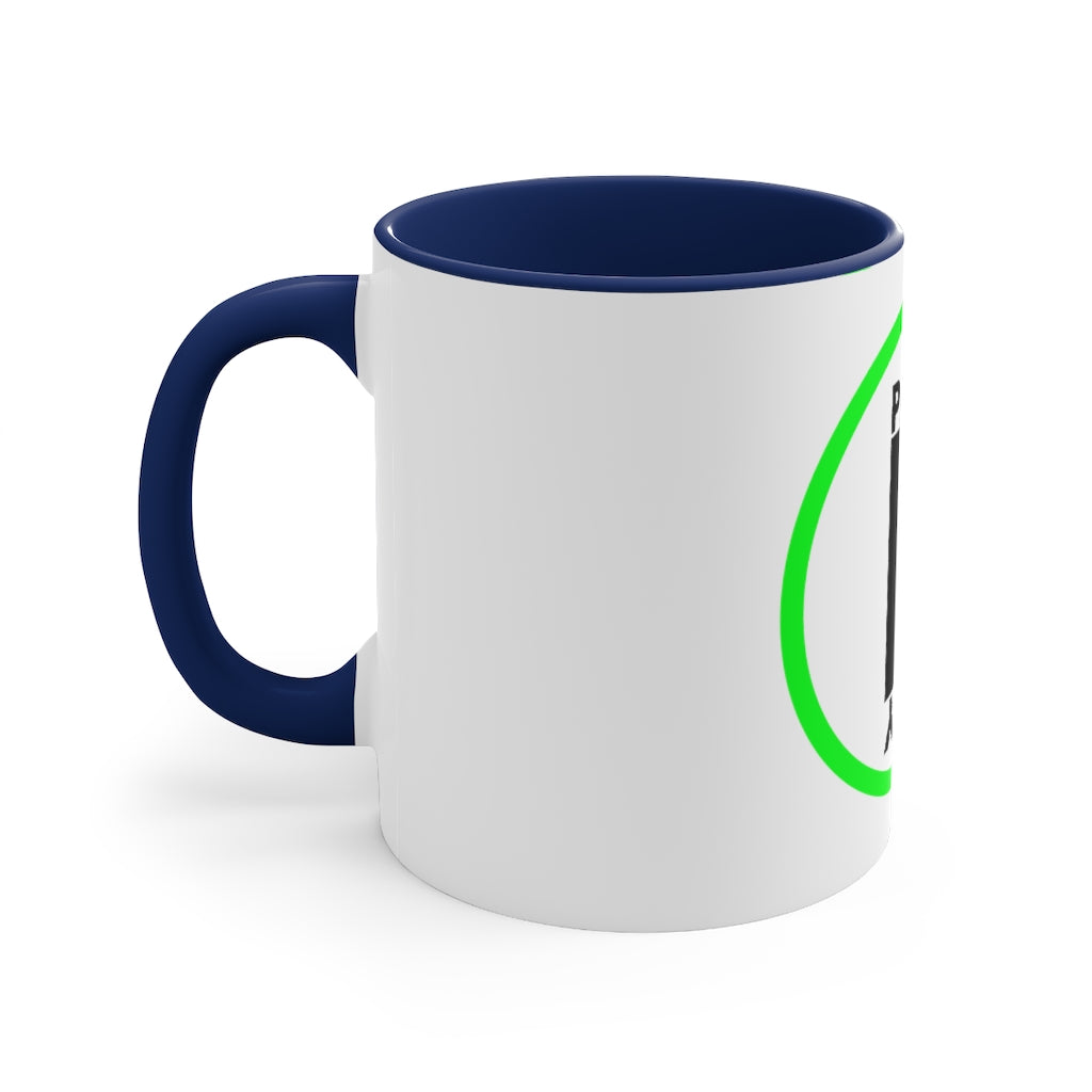 Add some color to your routine with this two-tone, custom accent coffee mug. This 11oz mug features an accented C-Handle that is comfortable to use, as well as an accented interior to add more contrast and character. With your design on this mug, you get an instant winner of a product.